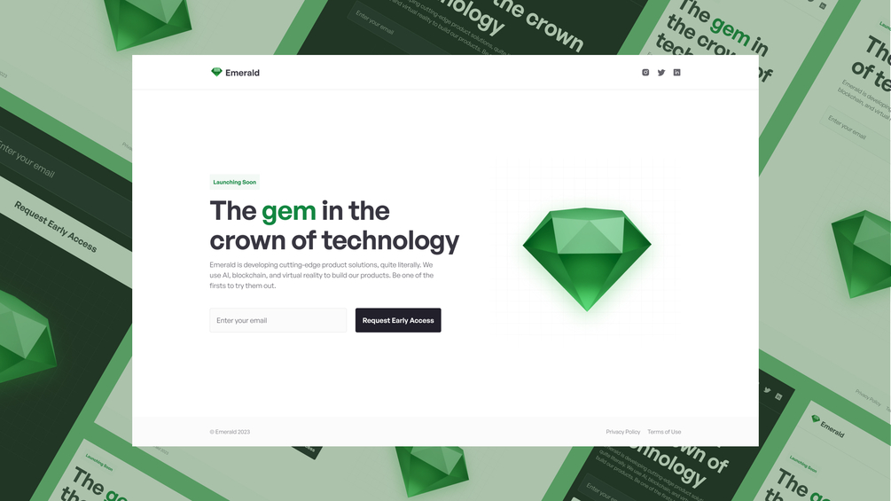 The hero image of the diamond is created by me in blender and is free to use as it is, this can also be easily replaced by any other desired image. The text written over there can be customised to the specific use case you are looking for.